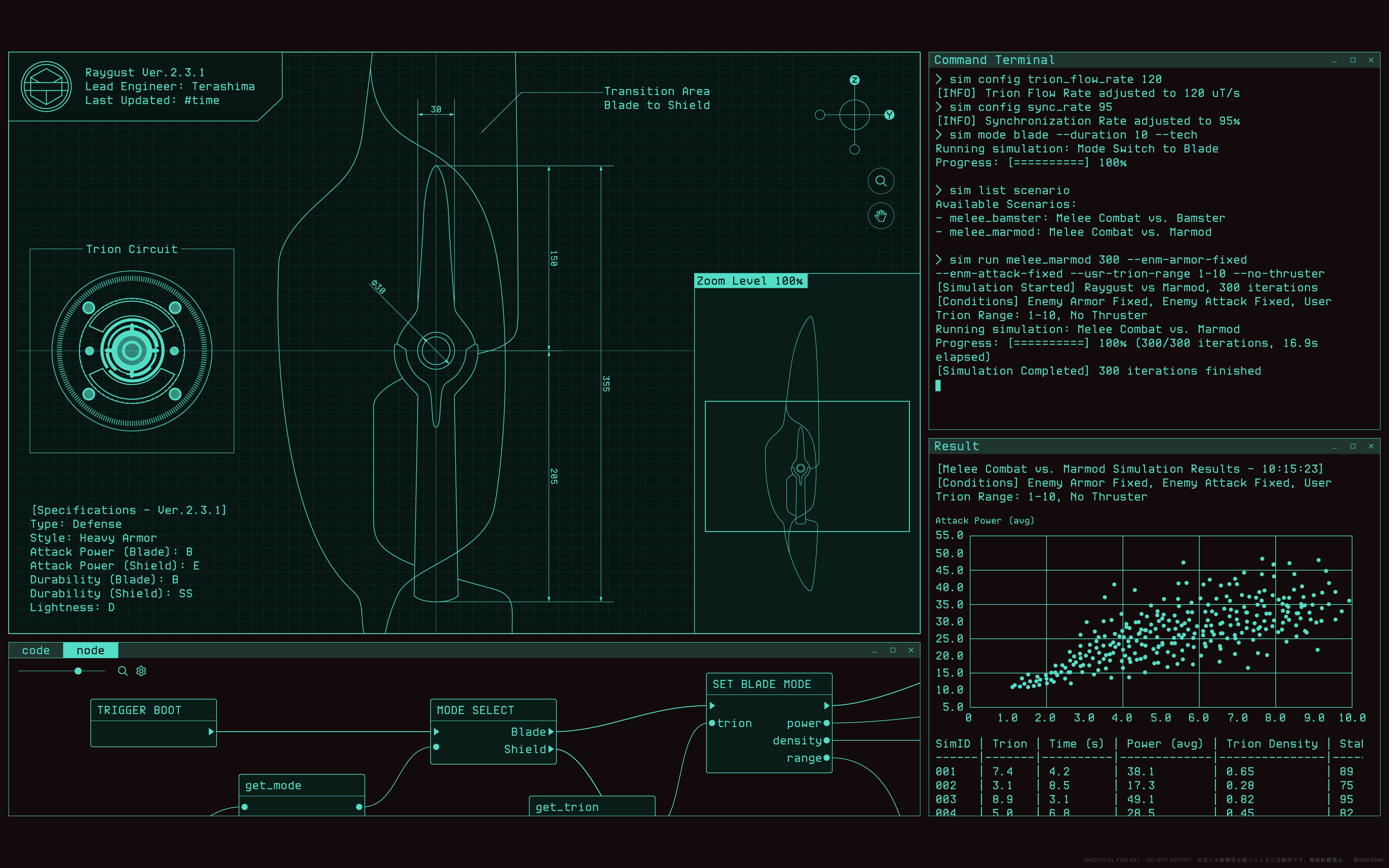 「チーフ! レイガストの攻撃威力を改良してみました。レビューお願いします!」