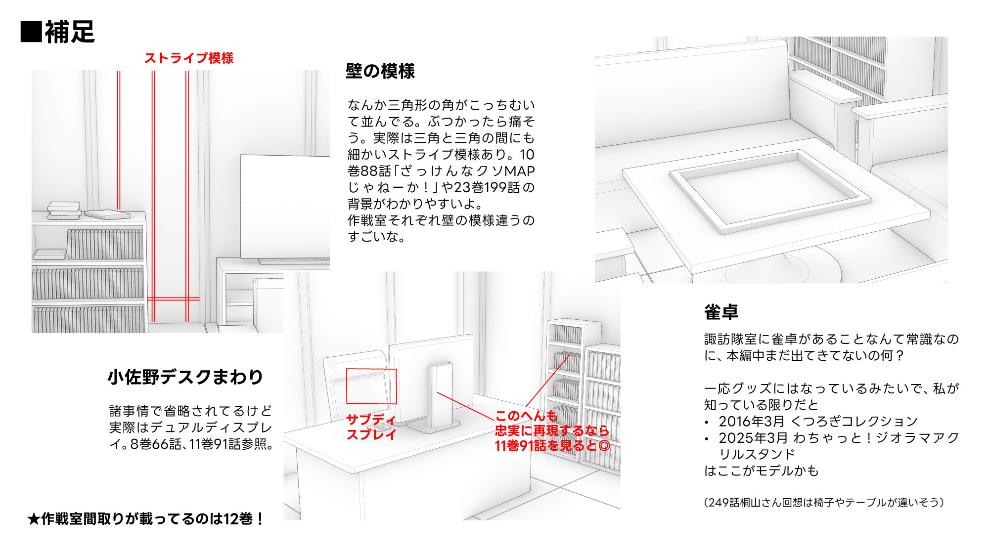 見たことのない角度から作戦室を見れて最高だったのでスクショ共有します。眺めて妄想したり、絵を描かれる方は作画資料や背景素材としてご活用ください。同僚許可済。報告は不要です。じゃんじゃん描いて諏訪隊や麻雀組や21歳組の作品増やしてくれ〜〜〜〜〜