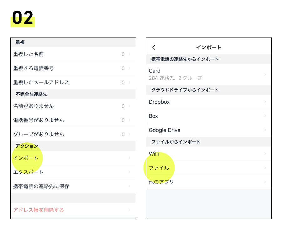 連絡先の件数が増えていれば無事インポート完了! 2ファイルともインポートする場合は、②に戻ってもう一方も同じ手順で。