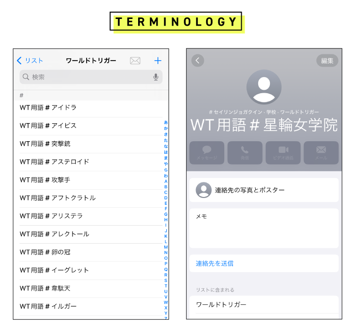 連絡先(電話帳)にワートリの登場キャラクター名や専門用語が一括登録されます。iPhoneの変換学習は連絡先を参照するので、よく使う単語が変換候補に出やすくなります。
