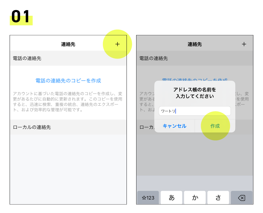 右上の+ボタンからアドレス帳を追加、作成。名前は影響しないので適当でOK